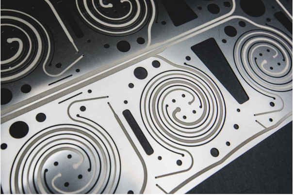 Typical applications include electronic components, metal mesh filters, shims, bipolar plates, shielding parts, and precision industrial components.
